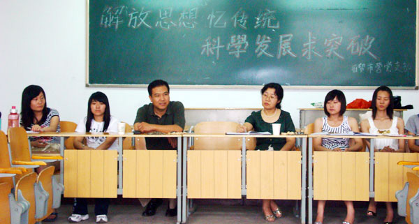 6月25日下午,国贸市营党支部在主楼107教室召开了“解放思想忆传统,科学发展求突破”的主题会议。院党委副书记田忠刚深入支部辅导学习,主题会议由国贸市营党支部书记雷建荣老师主持。